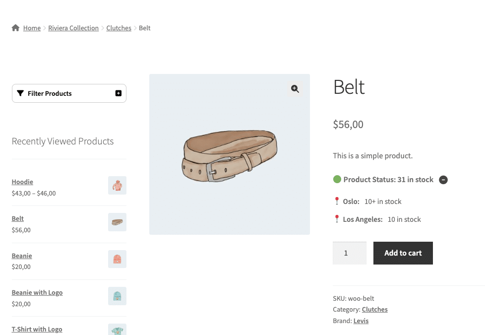 Local stock values are automatically added together to form WooCommerce’s product stock. Your storefront always shows the correct numbers, even across multiple warehouses.